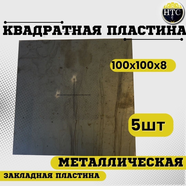 Квадратная пластина металлическая 100х100- 8 мм ( закладная пластина ). Количество: 5шт.