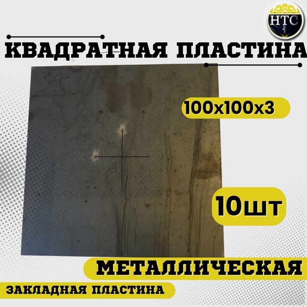 Квадратная пластина металлическая 100х100- 3 мм ( закладная пластина ). Количество: 10шт.